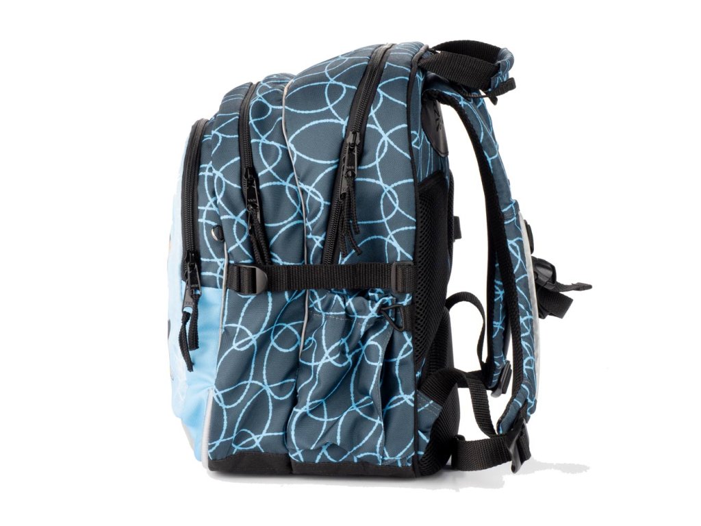 Batoh má po stranách stahovací popruhy a tak pokud není naplněn je možné ho přitáhnout více k zádům, čímž zajistite lepší ergonomii. Díky této možnosti i nízké váze splňuje požadavky turistického nebo volnočasového batůžku. Je možné jej doporučit i do alternativních ZŠ, kde žáci nemusí nosit učebnice. Pokud stahovací popruhy využívat nebudete, můžete je pohodlně vyvléknout a opět použít až když vyrazíte s batůžkem třeba na túru.Pro bezpečnost dětí je batoh osazen reflexními prvky ze všech stran, odolnost zajišťují kvalitní zipy značky YKK.