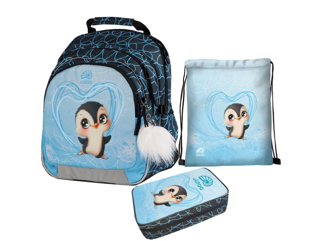 Školní batoh pro prvňáčky Tučňák – 3dílný set s velkým penálem Ulitaa