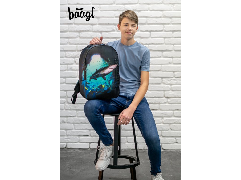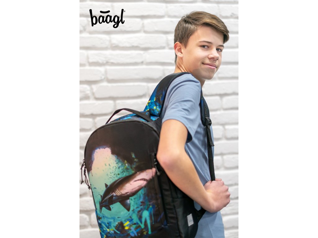 Školní batoh Baagl Earth Žralok by Lukero – ultralehký, recyklovaný, 15" notebook