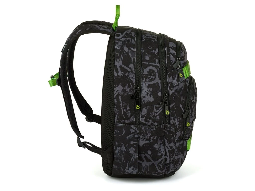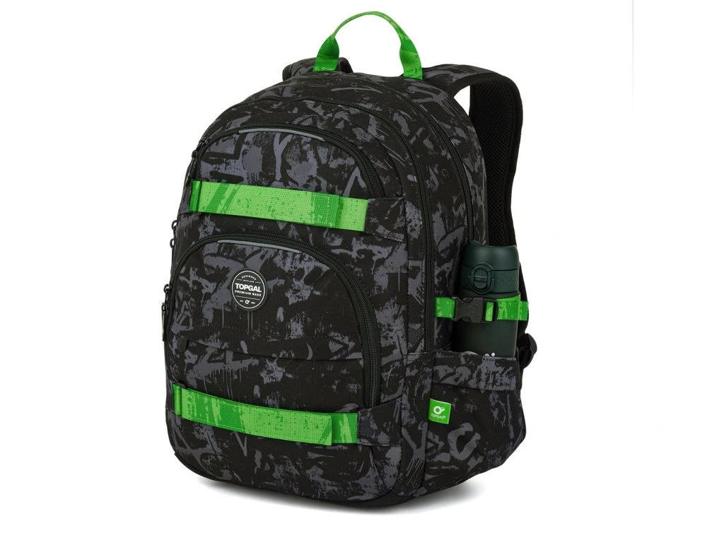 Studentský batoh Topgal VIKI 26041 Graffiti Green zaujme výrazným tmavým designem s neonově zelenými detaily. Ideální pro všechny, kteří mají rádi moderní street styl a chtějí ve škole vyniknout 🎒