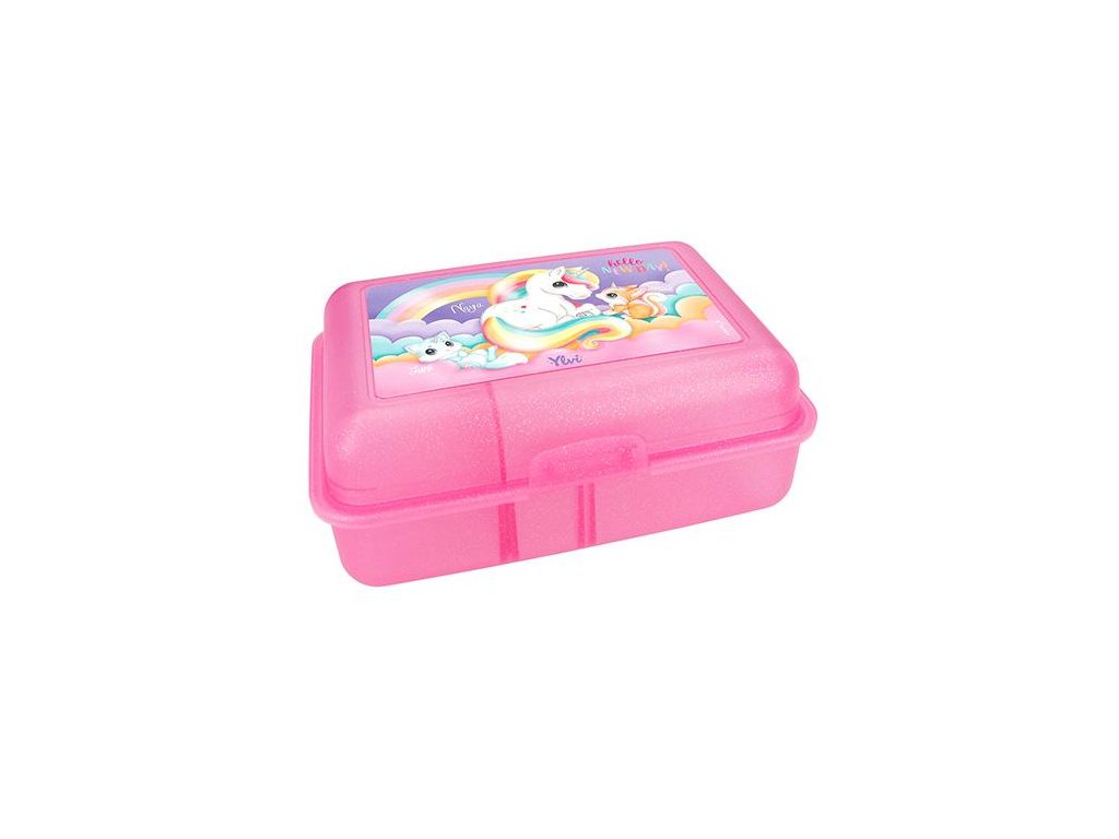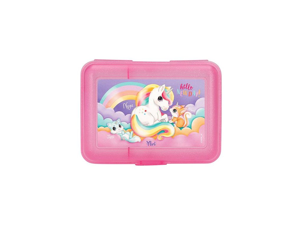 🌟 Začni den s třpytem! Svačinový box Ylvi Hello New Day! okouzlí všechny malé princezny svým růžovým designem s flitry a roztomilým motivem.