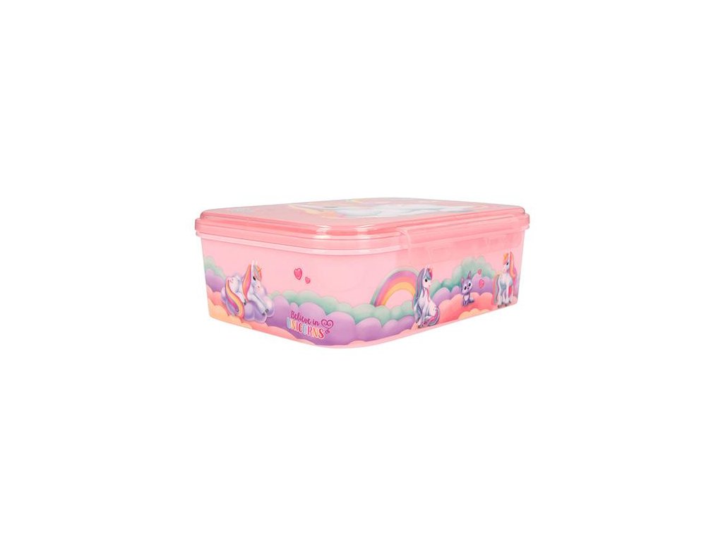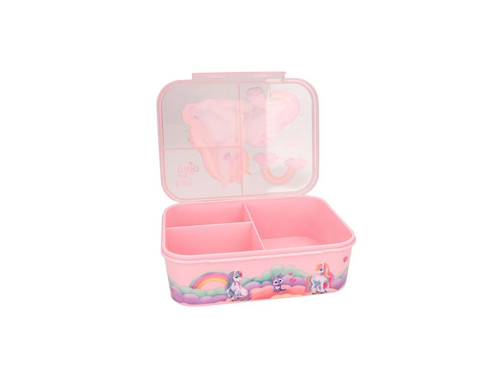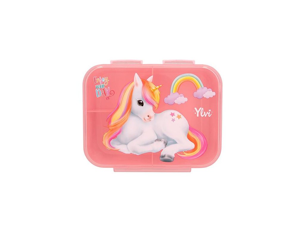 Svačinový box Ylvi Unicorn – 3 sekce s jednorožcem, růžový