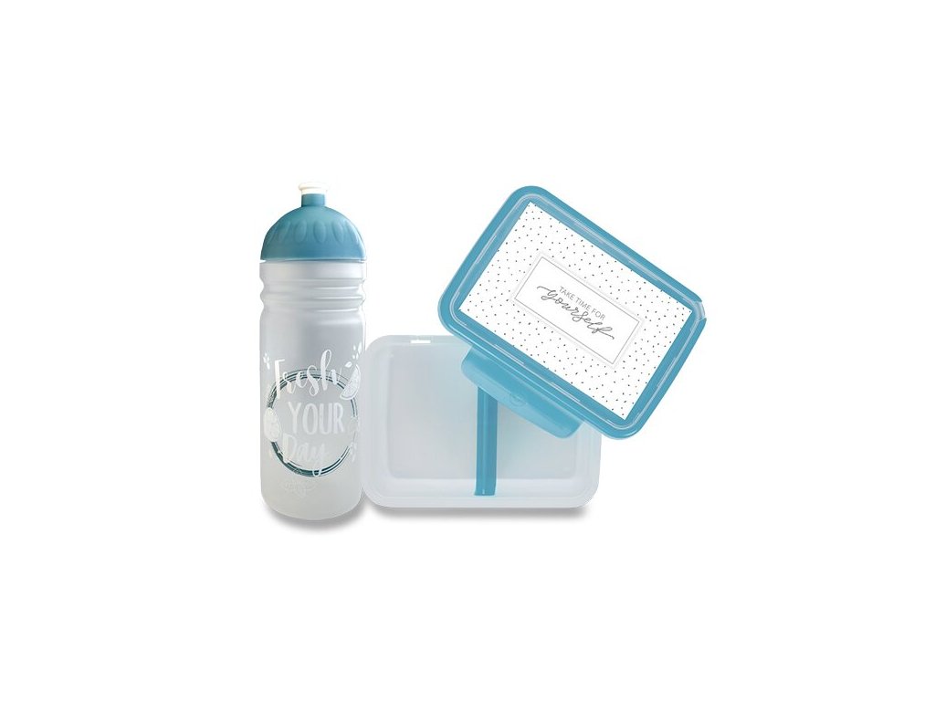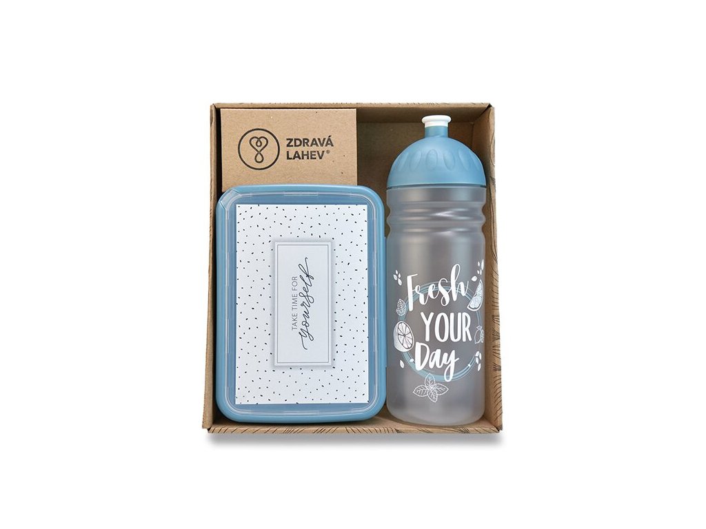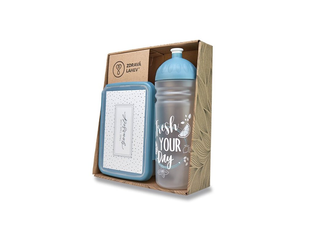 Set Zdravá lahev 0,7 l a box Zdravá sváča – Fresh šedomodrá