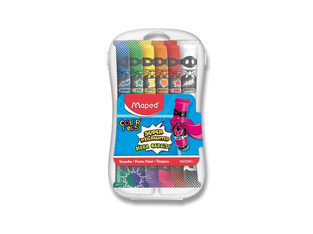 Temperové barvy Maped Color’Peps – 12 barev v tubách (12 × 12 ml)