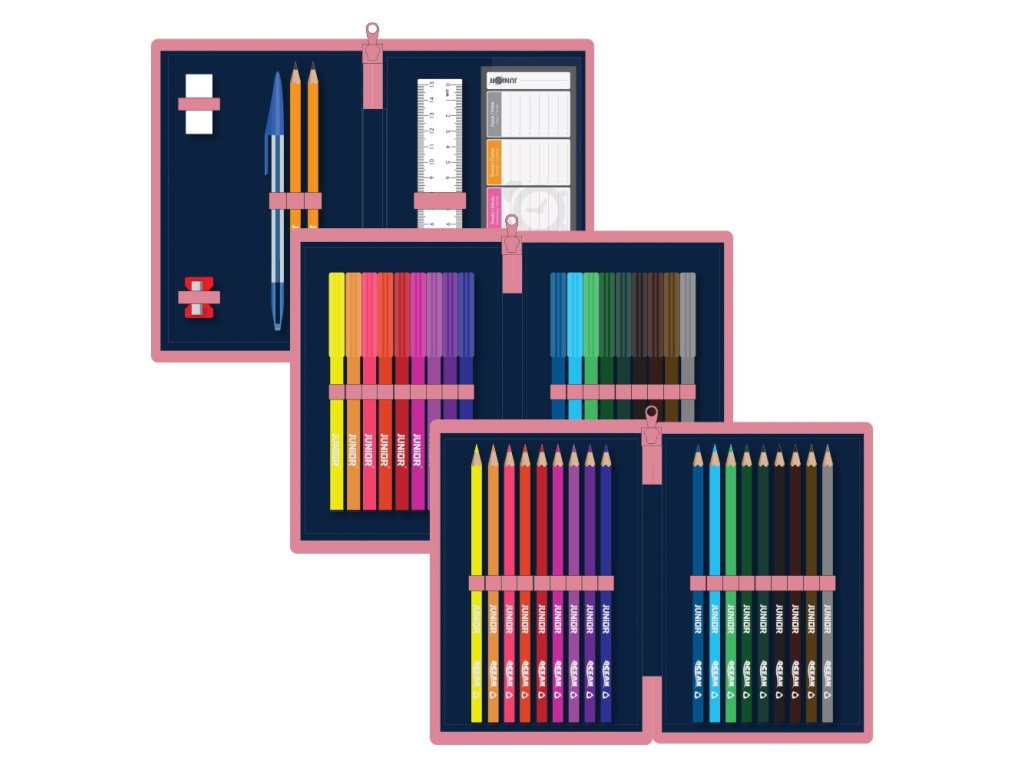 Tento třípatrový plný penál JUNIOR S8 – Kůň je ideální volbou pro všechny školačky, které milují koňské motivy a chtějí mít ve škole opravdu všechno přehledně uspořádané 🐴💗.
