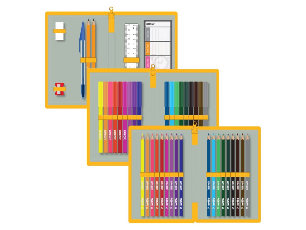 🎨 Tři přehledná patra – přehledné uspořádání všech školních pomůcek.