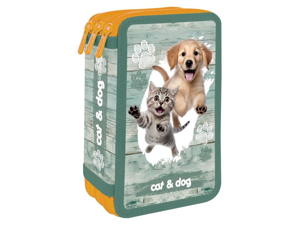 Plný školní penál JUNIOR S8 Kočka a pes – 3 patra, 43 kusů