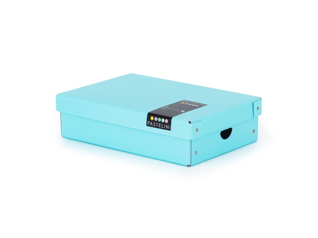 Malá lamino úložná krabice PASTELINI v modré barvě je praktickým a klidným řešením pro organizaci věcí v dětském pokoji, pracovně nebo ve škole 💙📦