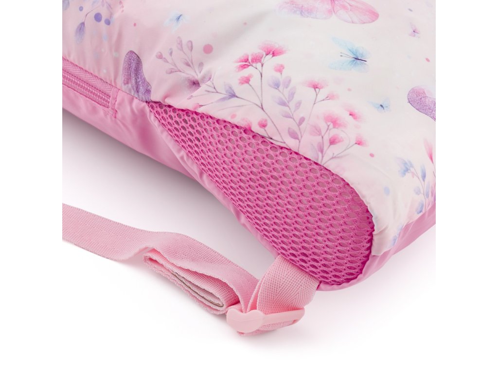 Sportovní vak Bagmaster Dopi 25 A s motivem třpytivých motýlků je ideální na přezůvky, tělocvik nebo volnočasové aktivity.