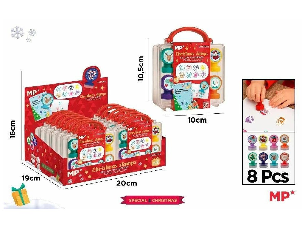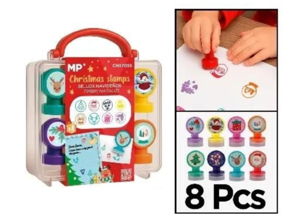 Sada 8 veselých vánočních razítek přinese do tvoření sváteční náladu. Děti si je zamilují při zdobení přáníček, dopisů Ježíškovi nebo při balení dárků.