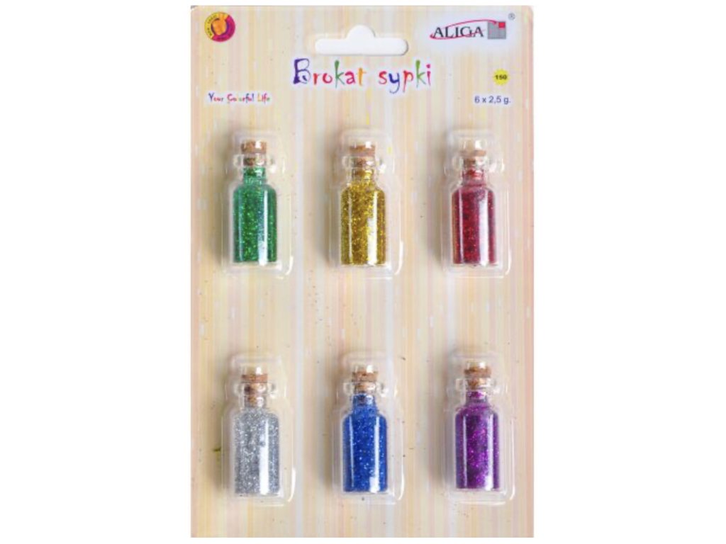 S brokátem mix barev 6×2,5 g vytvoří děti i dospělí nádherné třpytivé dekorace na papíře, kartonu i dalších projektech.