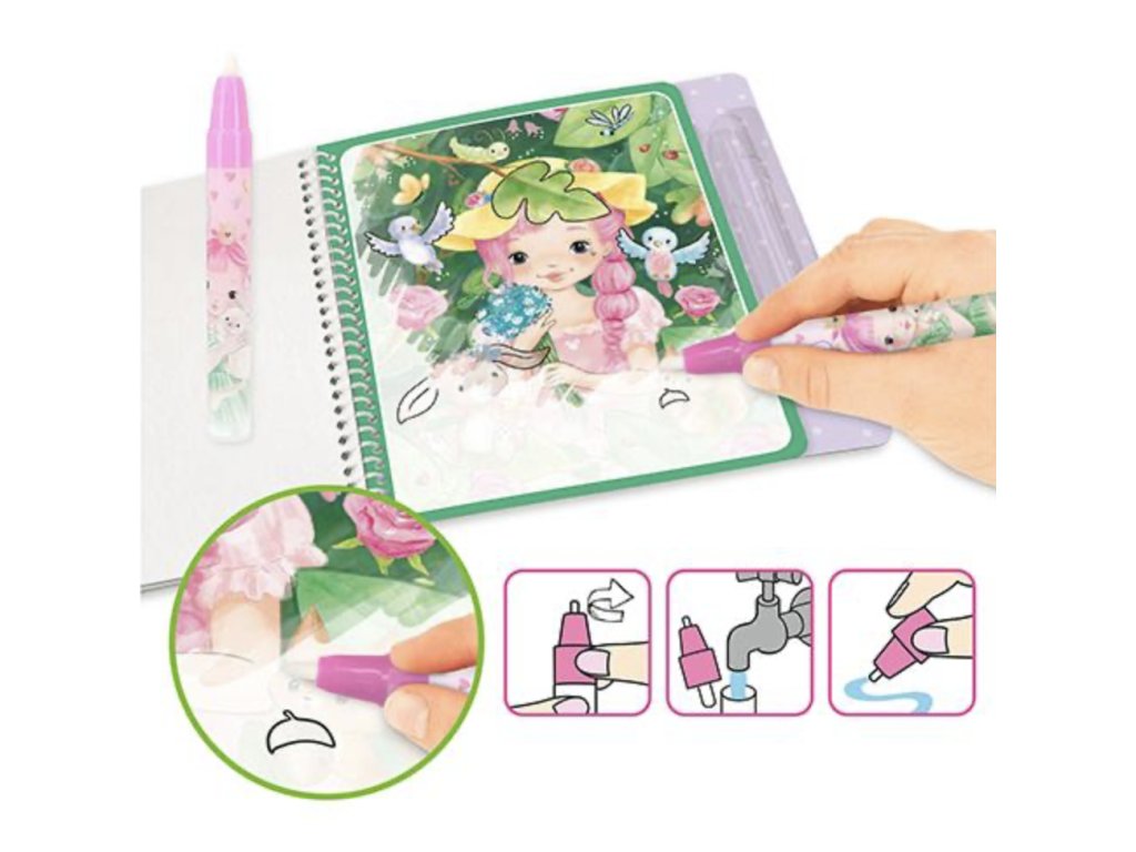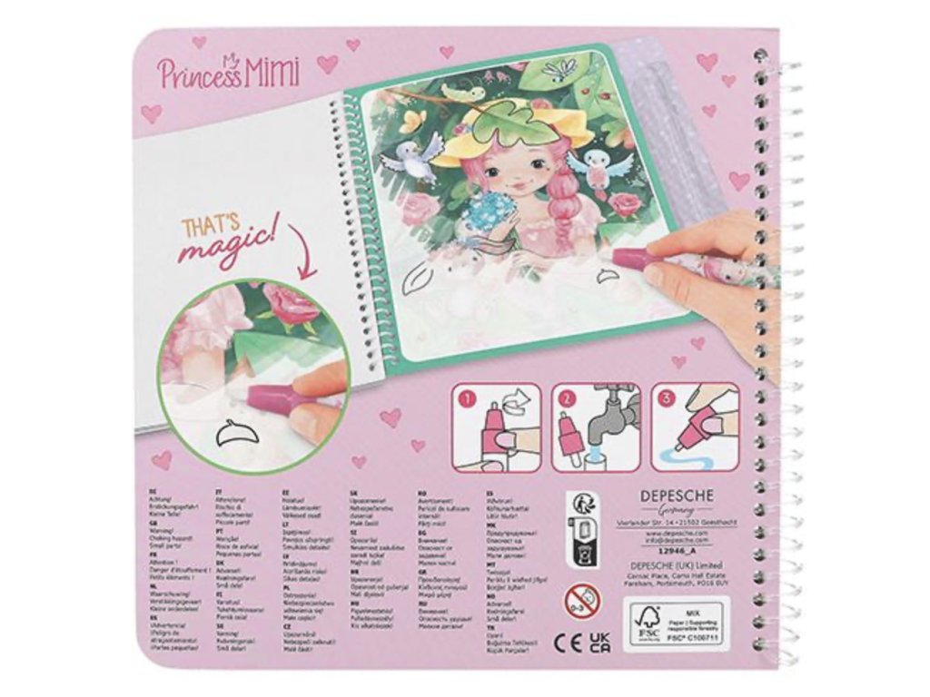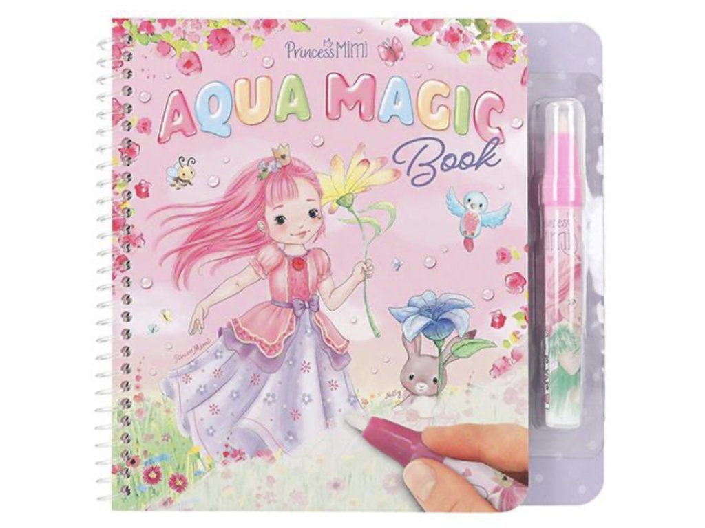 Omalovánky Princess Mimi Aqua Magic Book promění malování v magii. Naplň kouzelné pero vodou 💧, přetři obrázek a barvy se hned objeví 🌈. Jakmile obrázek uschne, barvy zmizí – můžeš tvořit znovu a znovu!