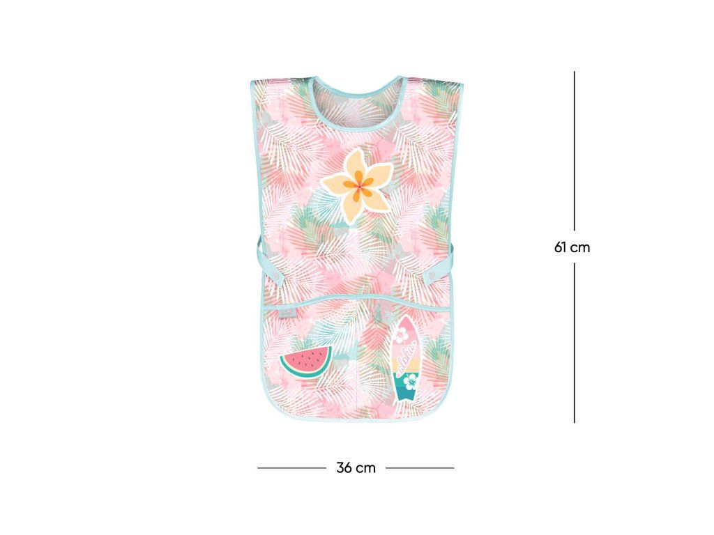 Ve spodní části zástěry se nacházejí dvě praktické kapsy, do kterých si děti mohou uložit štětce, pastelky nebo další drobnosti potřebné při tvoření.