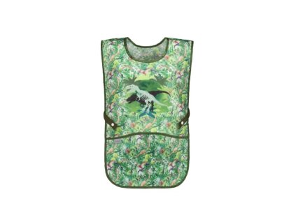 Zelenkavá dětská zástěra Baagl s motivem T-Rexe. Nový praktický střih a zapínání na patentky – bez vázání. Ochrání oblečení při malování a tvoření v MŠ i na 1. stupni ZŠ.